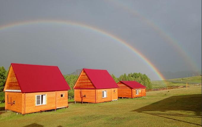 Размещение в благоустроенных домиках с удобствами в туркомплексе «Ирбизек»/ гостевом доме «Надежда».